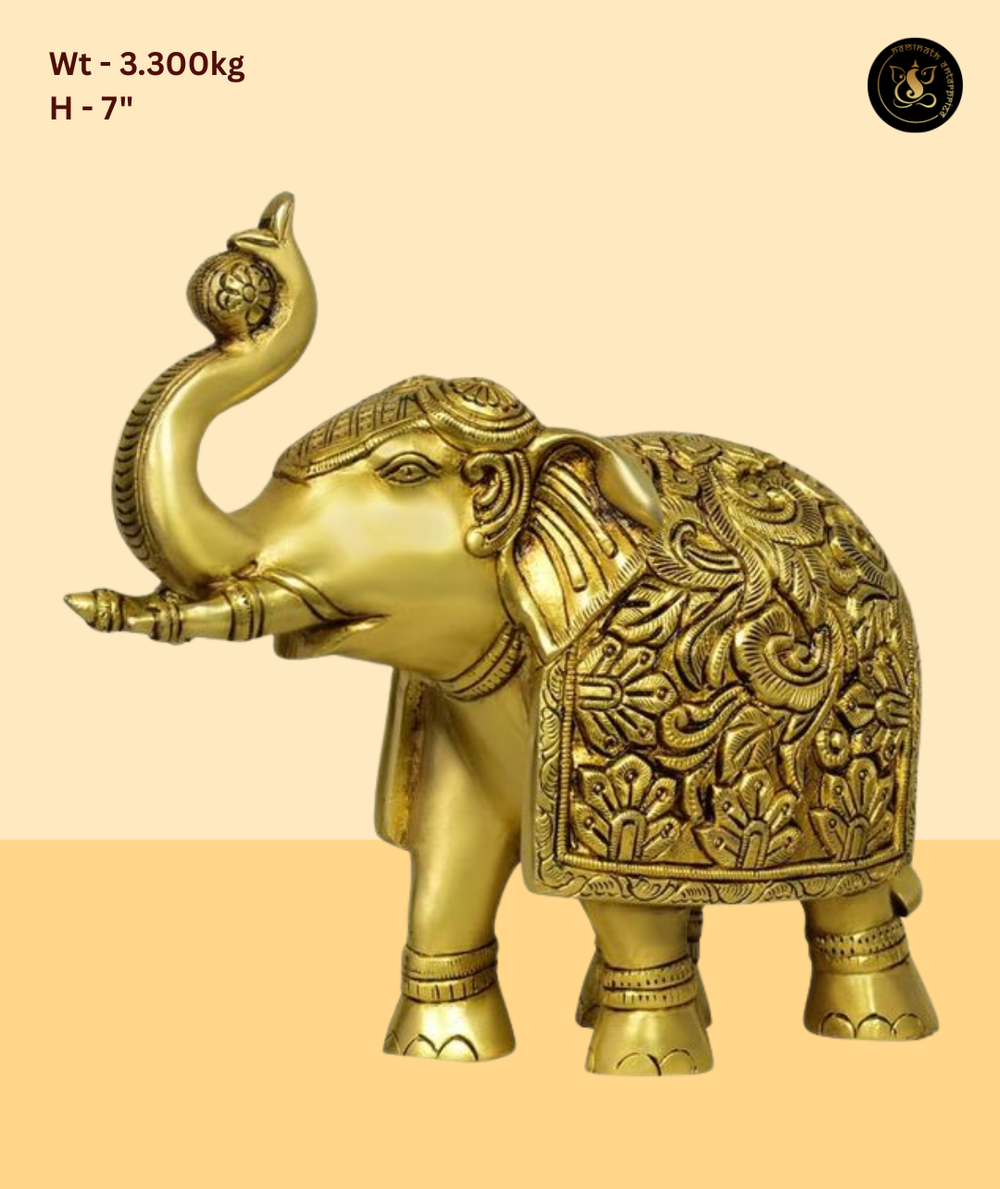 Solid brass kalash with elephant carving finished in antique style.