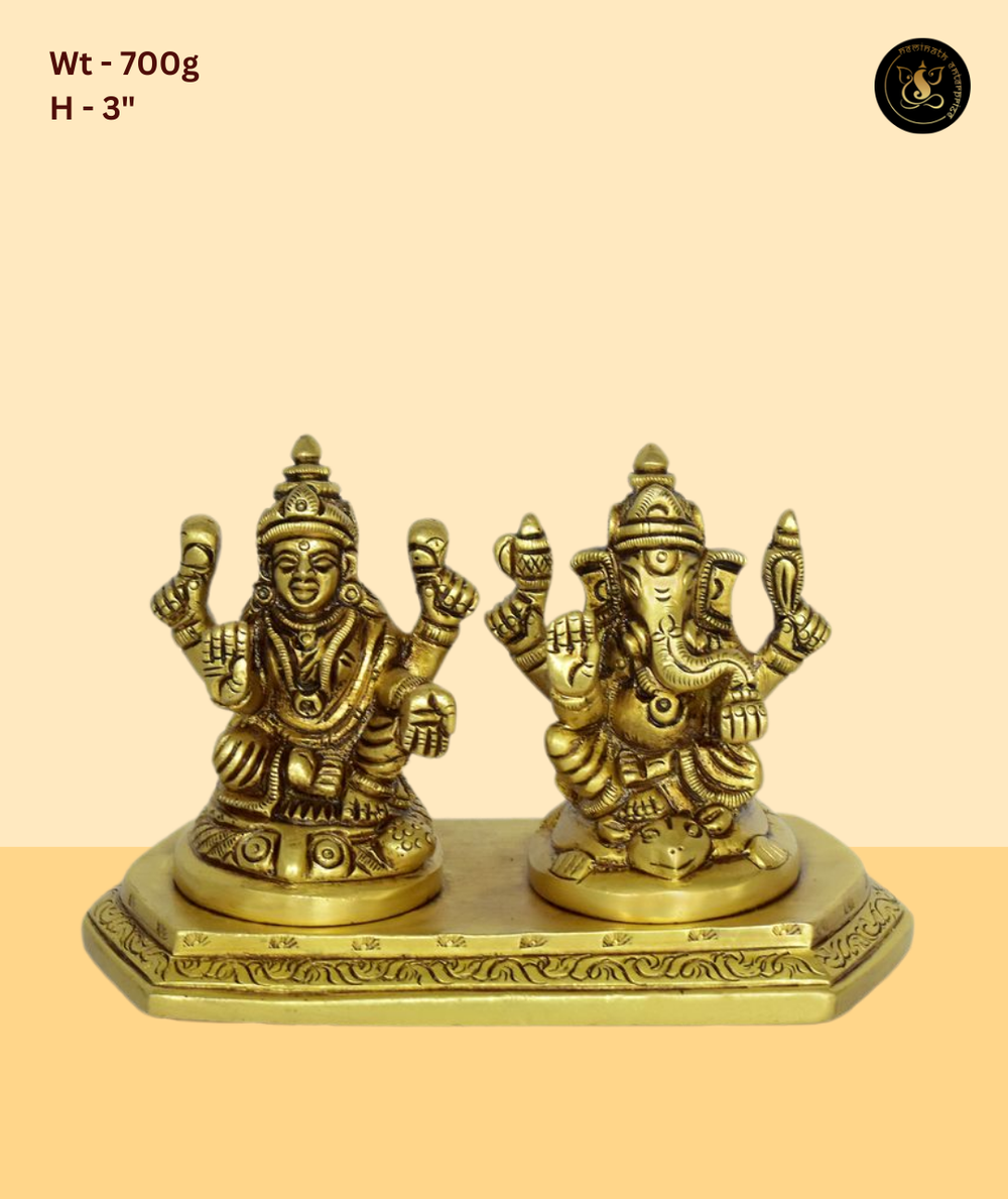 This beautifully crafted murti beautifully depicts Lord Ganesh and Goddess Lakshmi, radiating divine blessings and spiritual grace. Handcrafted with precision and devotion, it is an ideal addition to compact mandirs, spiritual gifting, daily worship. A timeless piece from Neminath Enterprise, perfect for bringing prosperity and positivity to sacred spaces.