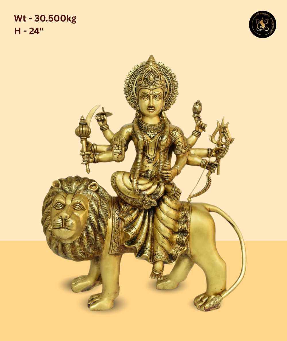 A decorative Durga Maa idol crafted to enhance both devotion and interior aesthetics. The artistic detailing and spiritual posture make it suitable for modern homes as well as traditional mandirs. Ideal for festive decor and spiritual gifting.