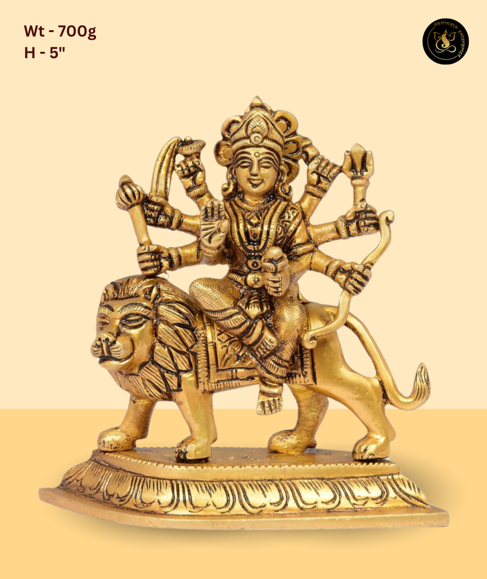 An elegant designer Durga idol crafted with artistic precision, making it ideal for housewarming ceremonies, weddings, and festive gifting. The stylish yet traditional design ensures it complements both classic and modern interiors. A thoughtful spiritual gift symbolizing strength and blessings.