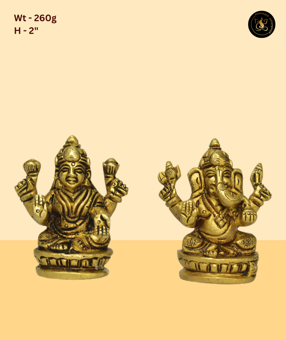 This beautifully crafted murti beautifully depicts Lord Ganesh and Goddess Lakshmi, radiating divine blessings and spiritual grace. Handcrafted with precision and devotion, it is an ideal addition to compact mandirs, spiritual gifting, daily worship. A timeless piece from Neminath Enterprise, perfect for bringing prosperity and positivity to sacred spaces.
