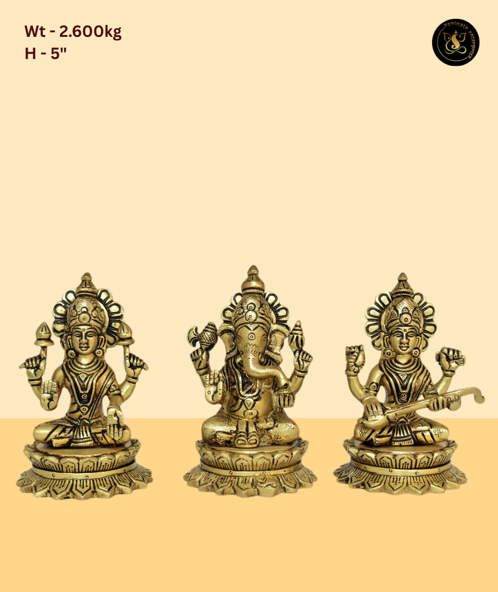 This beautifully crafted murti beautifully depicts Lord Ganesh and Goddess Lakshmi, radiating divine blessings and spiritual grace. Handcrafted with precision and devotion, it is an ideal addition to home temples, office decor, festive gifting. A timeless piece from Neminath Enterprise, perfect for bringing prosperity and positivity to sacred spaces.