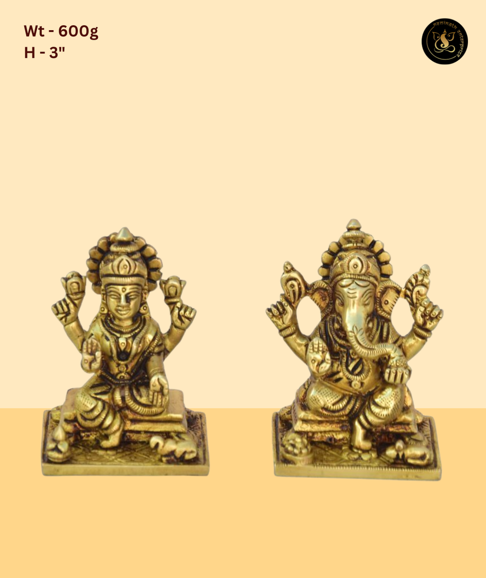 This beautifully crafted murti beautifully depicts Lord Ganesh and Goddess Lakshmi, radiating divine blessings and spiritual grace. Handcrafted with precision and devotion, it is an ideal addition to compact mandirs, spiritual gifting, daily worship. A timeless piece from Neminath Enterprise, perfect for bringing prosperity and positivity to sacred spaces.