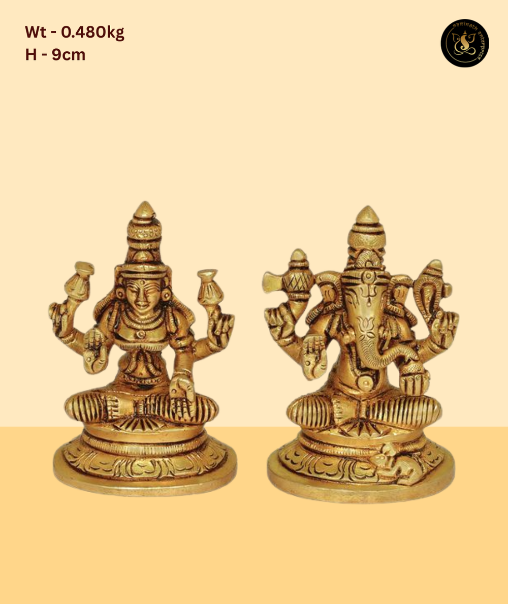 This beautifully crafted murti beautifully depicts Lord Ganesh and Goddess Lakshmi, radiating divine blessings and spiritual grace. Handcrafted with precision and devotion, it is an ideal addition to home temples, office decor, festive gifting. A timeless piece from Neminath Enterprise, perfect for bringing prosperity and positivity to sacred spaces.