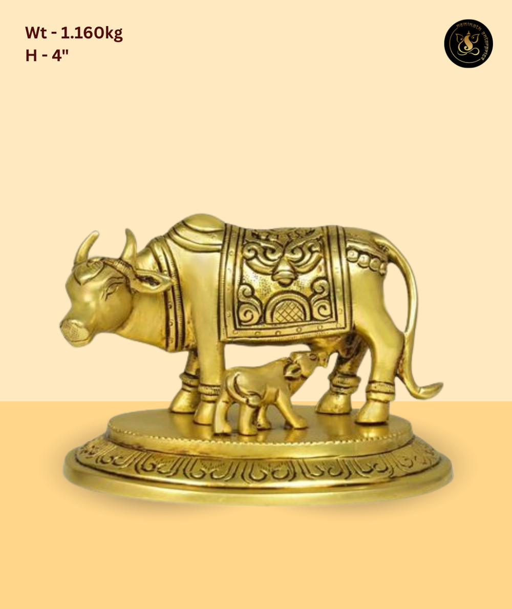 Featuring intricate engraved patterns, this brass cow and calf idol reflects skilled artistry and devotion. The fine detailing on the body and base enhances its elegance, making it ideal for home temples and religious ceremonies. Made from durable solid brass, it ensures long-lasting shine and strength while symbolizing prosperity and sacredness.