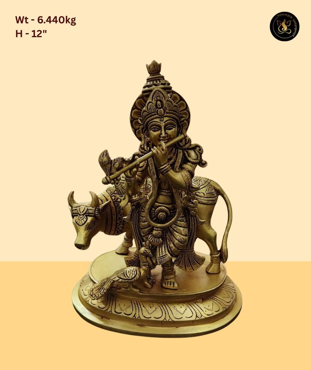 Material: Pure Brass | Finish: Antique Gold Brass | Weight: 6.44 kg | Height: 12 Inch | SKU: NE-KRSH-029 | Vendor: Neminath Enterprise | Ideal For: Puja, Temple Decor, Home Decor, Gifting | Occasion: Janmashtami, Diwali, Navratri, Housewarming, Wedding, Festivals