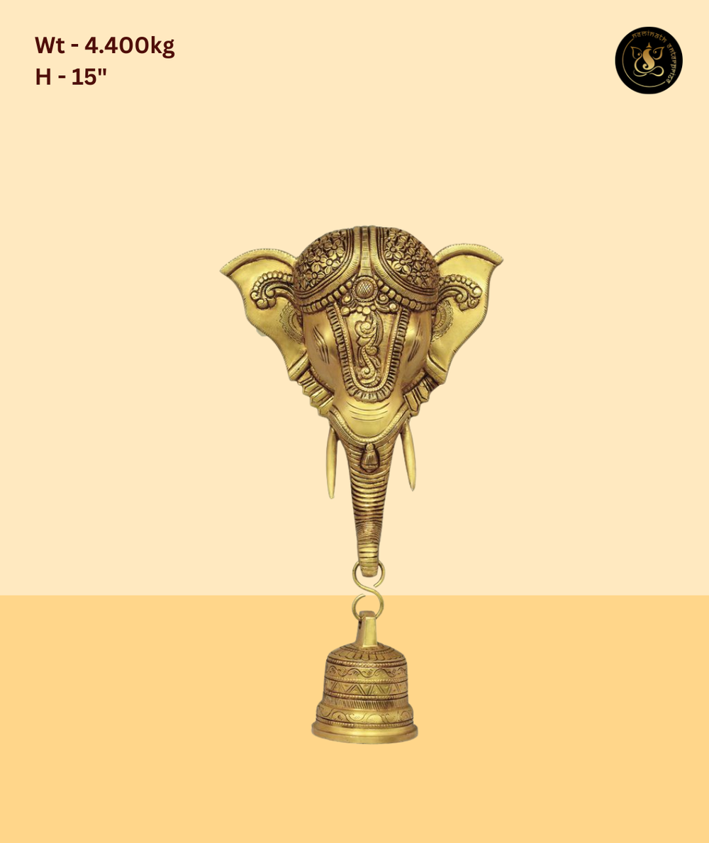 Heavy brass Ganesh head crafted for temples and grand interiors.