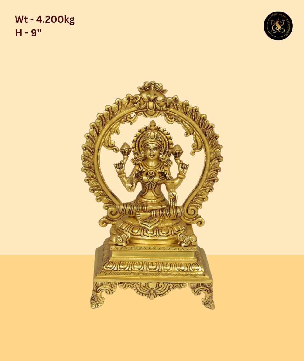 Traditional sitting Laxmi brass murti symbolizing wealth and positivity. Crafted using SSF casting method.