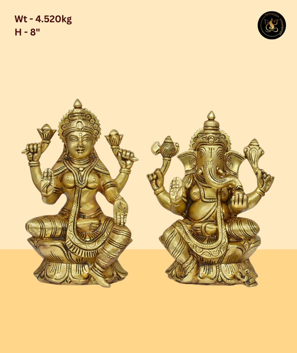 This beautifully crafted murti beautifully depicts Lord Ganesh and Goddess Lakshmi, radiating divine blessings and spiritual grace. Handcrafted with precision and devotion, it is an ideal addition to compact mandirs, spiritual gifting, daily worship. A timeless piece from Neminath Enterprise, perfect for bringing prosperity and positivity to sacred spaces.