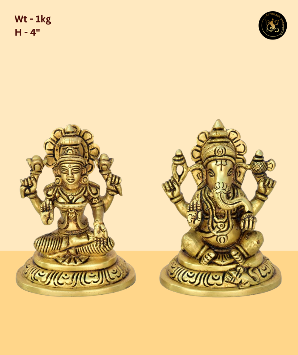 This beautifully crafted murti beautifully depicts Lord Ganesh and Goddess Lakshmi, radiating divine blessings and spiritual grace. Handcrafted with precision and devotion, it is an ideal addition to compact mandirs, spiritual gifting, daily worship. A timeless piece from Neminath Enterprise, perfect for bringing prosperity and positivity to sacred spaces.