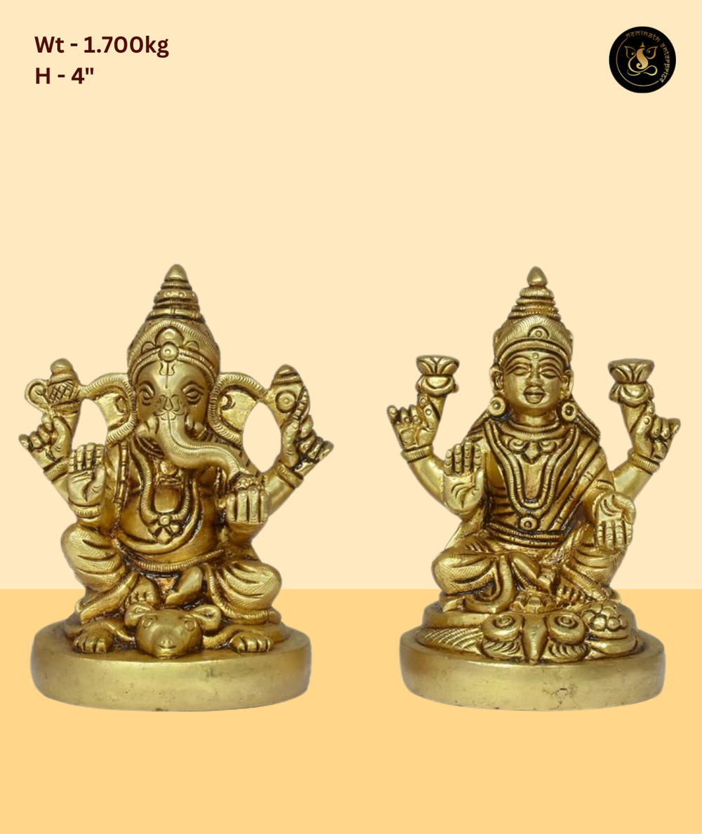 This beautifully crafted murti beautifully depicts Lord Ganesh and Goddess Lakshmi, radiating divine blessings and spiritual grace. Handcrafted with precision and devotion, it is an ideal addition to grand home temples, luxury gifting, premium spiritual interiors. A timeless piece from Neminath Enterprise, perfect for bringing prosperity and positivity to sacred spaces.