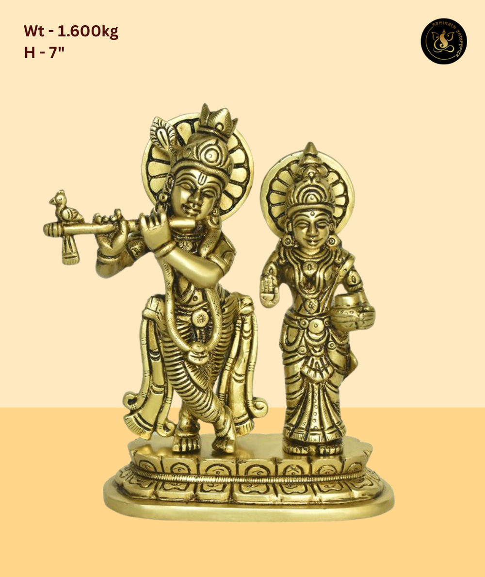 Material: Pure Brass | Finish: Antique Gold Brass | Weight: 1.6 kg | Height: 7 Inch | SKU: NE-KRSH-035 | Vendor: Neminath Enterprise | Ideal For: Puja, Temple Decor, Home Decor, Gifting | Occasion: Janmashtami, Diwali, Navratri, Housewarming, Wedding, Festivals