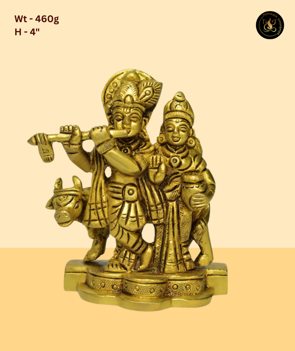 Material: Pure Brass | Finish: Antique Gold Brass | Weight: 0.46 kg | Height: 4 Inch | SKU: NE-KRSH-055 | Vendor: Neminath Enterprise | Ideal For: Puja, Temple Decor, Home Decor, Gifting | Occasion: Janmashtami, Diwali, Navratri, Housewarming, Wedding, Festivals