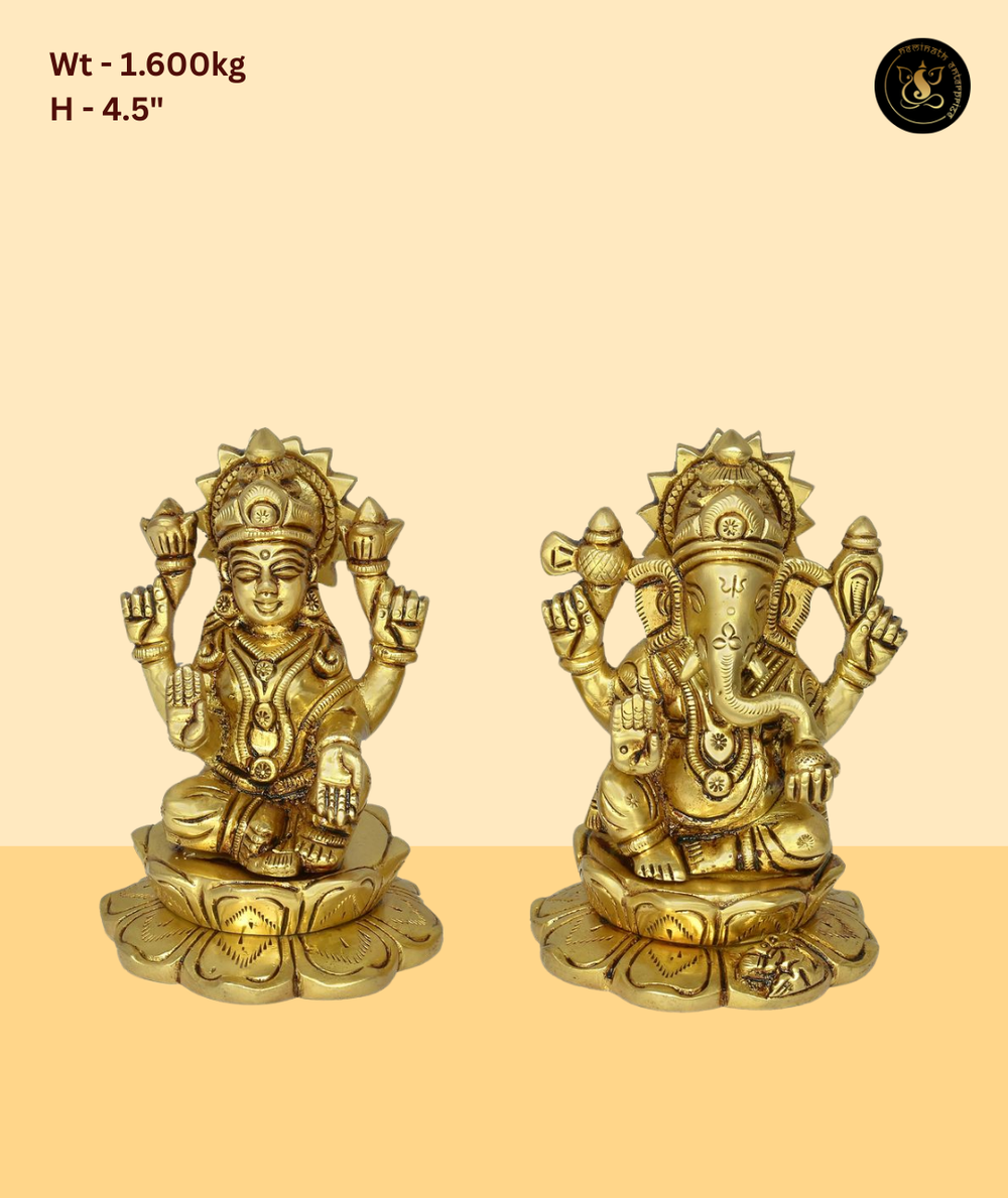 This beautifully crafted murti beautifully depicts Lord Ganesh and Goddess Lakshmi, radiating divine blessings and spiritual grace. Handcrafted with precision and devotion, it is an ideal addition to home temples, office decor, festive gifting. A timeless piece from Neminath Enterprise, perfect for bringing prosperity and positivity to sacred spaces.