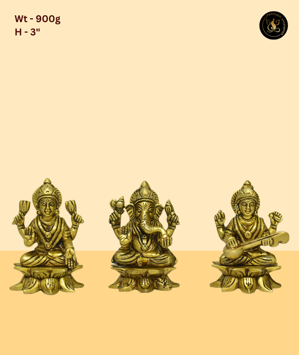 This beautifully crafted murti beautifully depicts Lord Ganesh and Goddess Lakshmi, radiating divine blessings and spiritual grace. Handcrafted with precision and devotion, it is an ideal addition to home temples, office decor, festive gifting. A timeless piece from Neminath Enterprise, perfect for bringing prosperity and positivity to sacred spaces.