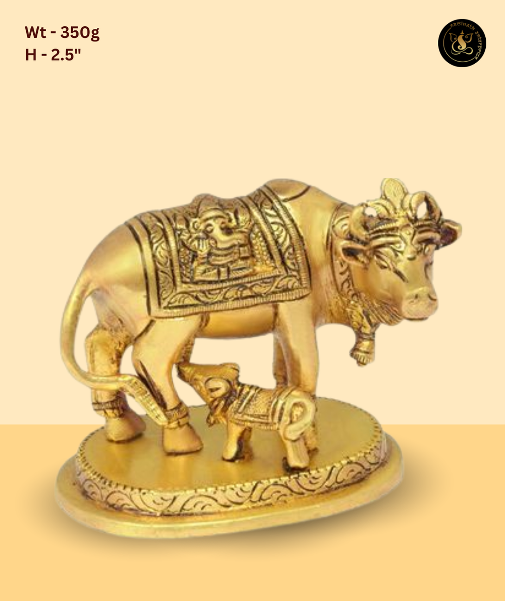 Bring divine energy to your pooja space with this small brass cow and calf idol. Expertly handcrafted, this idol represents prosperity, purity, and devotion. Made from premium brass, it’s ideal for home mandirs, pooja rooms, and gifting during festivals. The intricate detailing of the cow and calf reflects skilled craftsmanship and traditional artistry. A sacred decorative piece that enhances any spiritual setting.