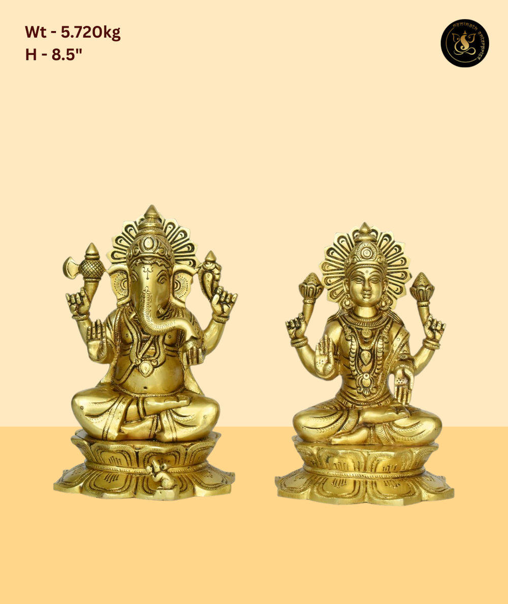 This beautifully crafted murti beautifully depicts Lord Ganesh and Goddess Lakshmi, radiating divine blessings and spiritual grace. Handcrafted with precision and devotion, it is an ideal addition to compact mandirs, spiritual gifting, daily worship. A timeless piece from Neminath Enterprise, perfect for bringing prosperity and positivity to sacred spaces.